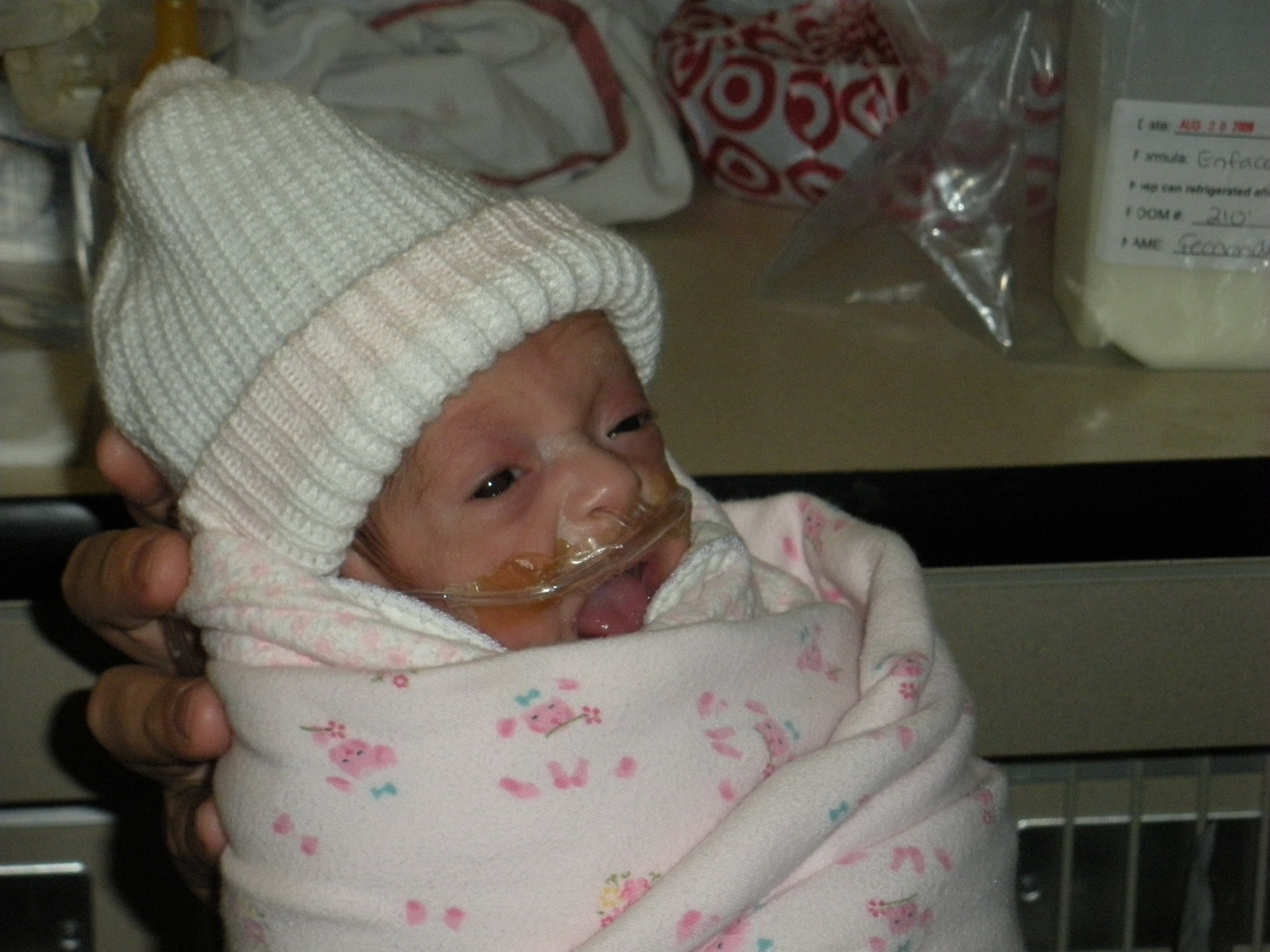 In 2009 my daughter, Elizabeth was born at just 26 weeks gestation and that’s when my scary journey began. She was what they call in the medical field a Micro-Preemie, weighing only 1lb 8oz. Month after month I watched her fight for her life as she struggled to breathe due to her underdeveloped lungs. Connected to many lines that monitored her vitals and provided nutrition, she grimaced from the discomfort she apparently felt. I visited the NICU every day and patiently waited for the green light for her to come home. The baby room was ready but little did I know that it would soon turn into a mini-hospital room filled with oxygen tanks, a feeding pump, a suction machine and many other medical supplies.